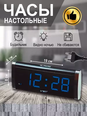 -5%1022.2 ₽ 1076 ₽Хорошие и качественные электронные классические настольные часы VST 738-5 имеют современный стиль и украсят и рабочий кабинет, и домашний интерьер. Часы имеют спокойную синюю подсветку и крупные цифры, которые будут видны издалека. Часы легки в настройке и имеют простой функционал: время и будильник. Сохранение хода времени и пользовательских настроек при отключении питания (нужны две батарейки типа AAA). Работают от сети 220. Покупая настольные часы данного производителя - вы получаете товар самого высокого качества, который прослужит вам долгие годы. Каждая единица проходит функциональную и визуальную проверку перед упаковкой, в связи с чем процент брака составляет менее 0,5 %.