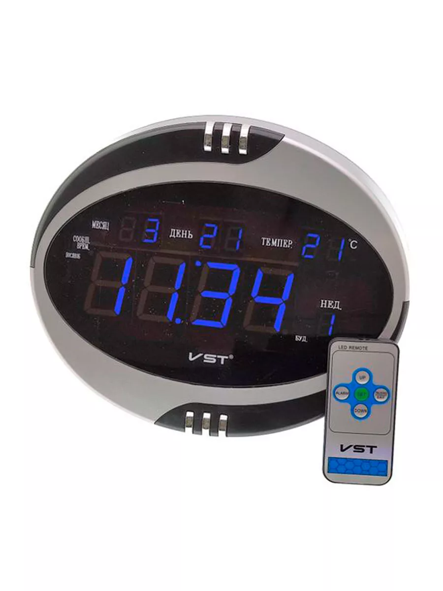 Формат времени: 12/24 ч. Будильник: есть (8 мелодий). Календарь: есть, показывают число, месяц и день недели. Термометр: есть (-9 до +50С), показывают комнатную температуру. Голосовое оповещение (говорящие): есть (время, на русском языке). Исполнение: настенные/настольные. Дополнительные функции: 1) Автоматическое снижение яркости дисплея в ночное время (с 22:00 до 07:00). 2) Пульт ДУ. Питание: 9В - блок питания (в комплекте). Часы электронные с синей подсветкой.
