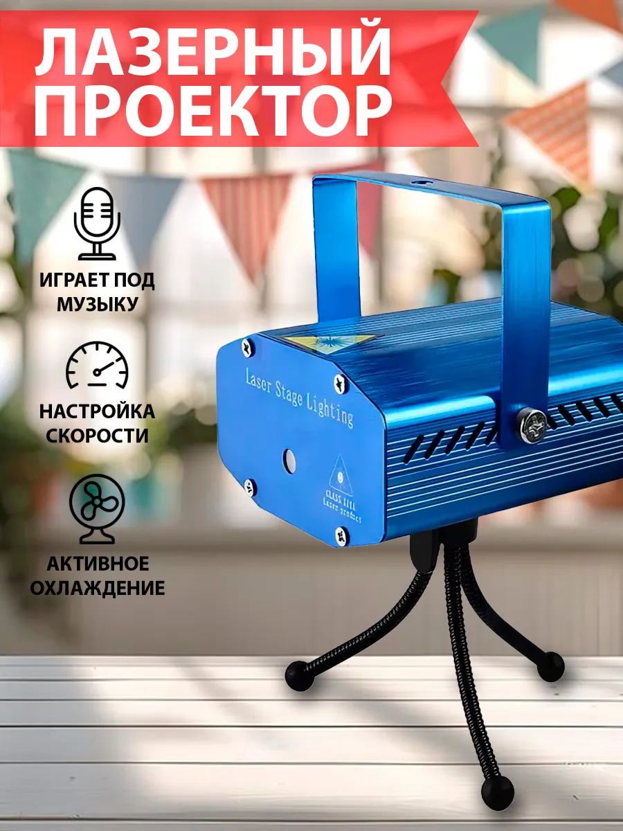 Новогодний лазерный проектор для дома.За окном непогода и слякоть, а хочется праздника и ярких красок? Устройте незабываемое лазерное шоу для себя и своих друзей прямо у себя в квартире, превратив ее в настоящий диско-танцпол, разукрашенный миллионами мерцающих звезд! Теперь устроить феерическое шоу, не выходя из дома, возможно с лазерной установкой Mini Stage Laser Stage Lighting!Лазерный проектор оптимально подойдет для домашних вечеринок, для кафе, баров, ресторанов. Данный прибор является ярким представителем небольшой группы проекторов предназначенных для домашних дискотек.Установка лазерного проектора очень проста, с ней без труда разберется даже ребенок. Свето-музыка работает в двух режимах, фоновый и в такт мелодий (встроенный микрофон улавливает такт мелодий и меняет ритм и скорость движения лучей). Устройство очень легкое и компактное, его можно взять собой в гости или за город.