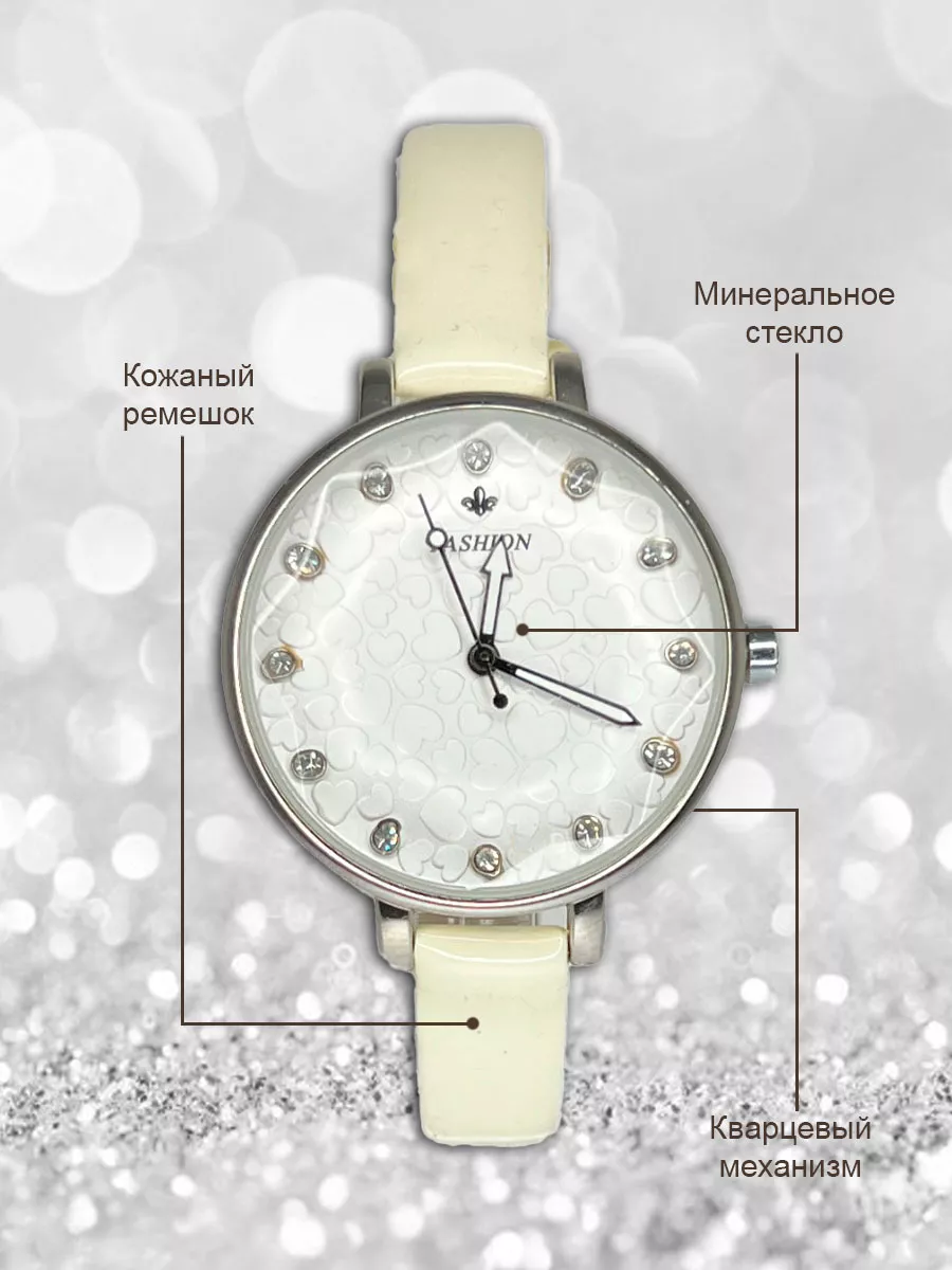 Женские стильные наручные кварцевые часы на кожаном ремешке. Возмодно потребуется замена элемента питания. Производитель Fashion - это огрмомная фабрика на территории КНР, которая специализируется на производстве качественных наручных часов. Покрытие PVD, которое обеспечит долговременное ношение часов без темнения краски.