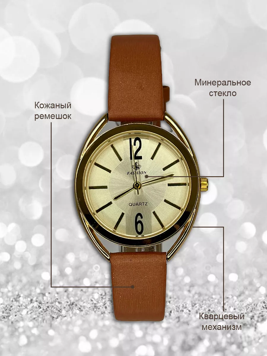 Женские стильные наручные кварцевые часы на кожаном ремешке. Возмодно потребуется замена элемента питания. Производитель Fashion - это огрмомная фабрика на территории КНР, которая специализируется на производстве качественных наручных часов. Покрытие PVD, которое обеспечит долговременное ношение часов без темнения краски.