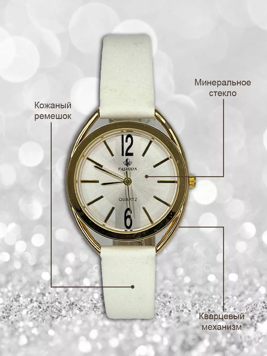 Женские стильные наручные кварцевые часы на кожаном ремешке. Возмодно потребуется замена элемента питания. Производитель Fashion - это огрмомная фабрика на территории КНР, которая специализируется на производстве качественных наручных часов. Покрытие PVD, которое обеспечит долговременное ношение часов без темнения краски.
