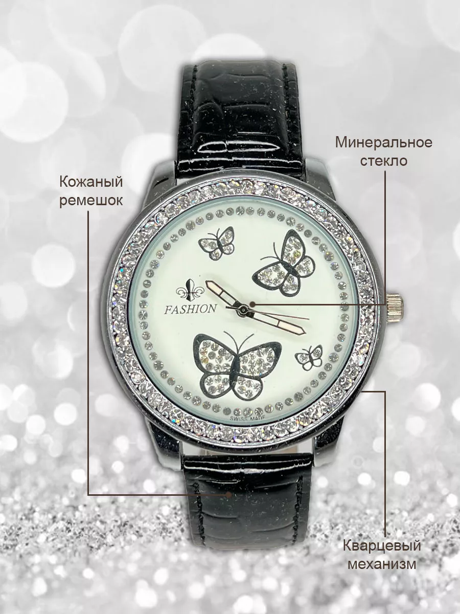 Женские стильные наручные кварцевые часы на кожаном ремешке. Возмодно потребуется замена элемента питания. Производитель Fashion - это огрмомная фабрика на территории КНР, которая специализируется на производстве качественных наручных часов. Покрытие PVD, которое обеспечит долговременное ношение часов без темнения краски.