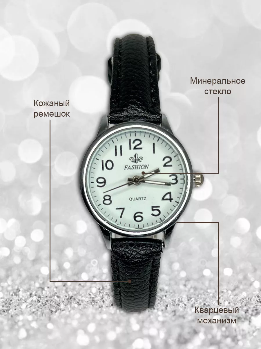 Женские классические наручные кварцевые часы на кожаном ремешке. Возмодно потребуется замена элемента питания. Производитель Fashion - это огрмомная фабрика на территории КНР, которая специализируется на производстве качественных наручных часов. Покрытие PVD, которое обеспечит долговременное ношение часов без темнения краски.
