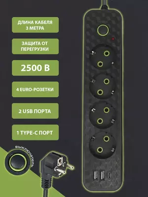 -40%677.4 ₽ 1129 ₽Сетевой фильтр с 4 розетками 2 USB + 1 Type-C - это многофункциональный удлинитель, который станет незаменимым помощником в вашем доме или офисе. Удлинитель оснащен 4 розетками, что позволяет одновременно подключить несколько электрических приборов. В комплекте также имеются 2 USB порта и 1 USB Type-C, что дает возможность заряжать мобильные устройства и подключать дополнительные устройства к одной розетке. Сетевой фильтр оснащен предохранителем, который обеспечивает безопасность использования. Корпус удлинителя изготовлен из жаропрочного пластика, выдерживающего температуру до 750 градусов. Контакты изготовлены из меди, что гарантирует надежность и долговечность продукта. Выключатель питания расположен на корпусе удлинителя, что упрощает его использование. Длина провода составляет 3 метра, что позволяет комфортно использовать удлинитель в любом месте. Сетевой фильтр подходит для подключения различных устройств, включая компьютеры, телевизоры, телефоны и другие бытовые приборы. Одна...